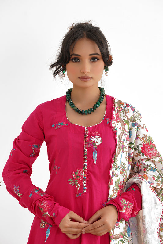 Wildflower Cotton Kalidaar with Patch Work and Applique Printed Embroidered Dupatta